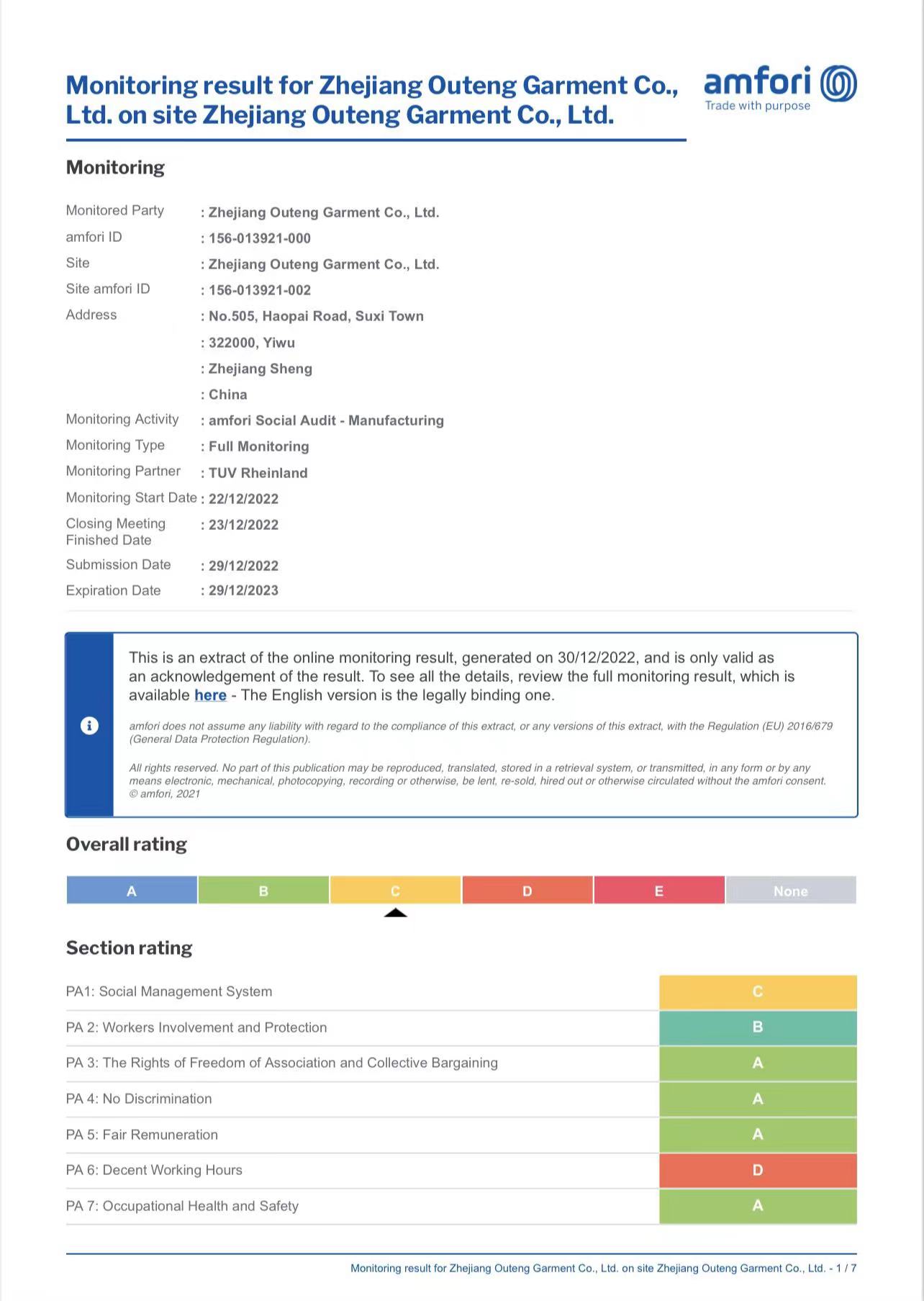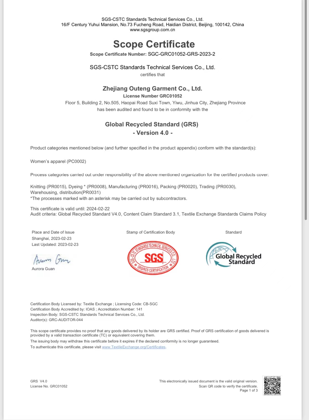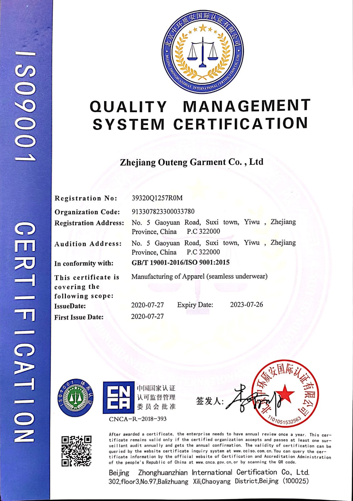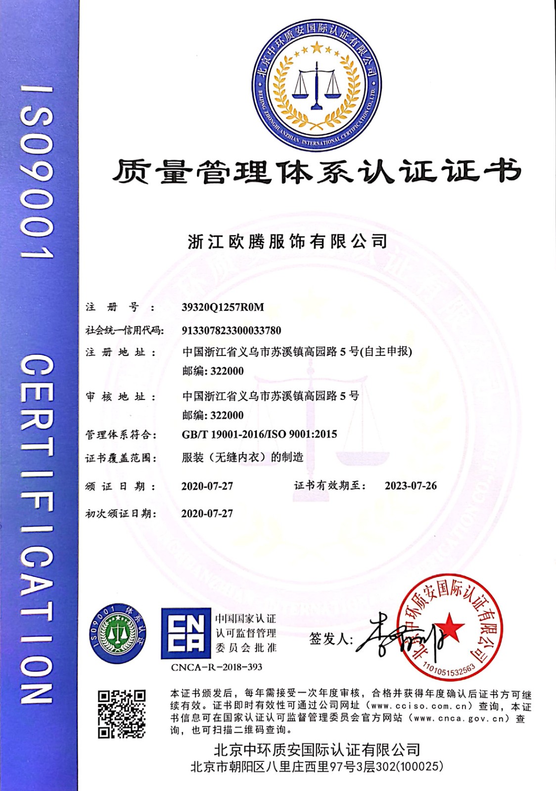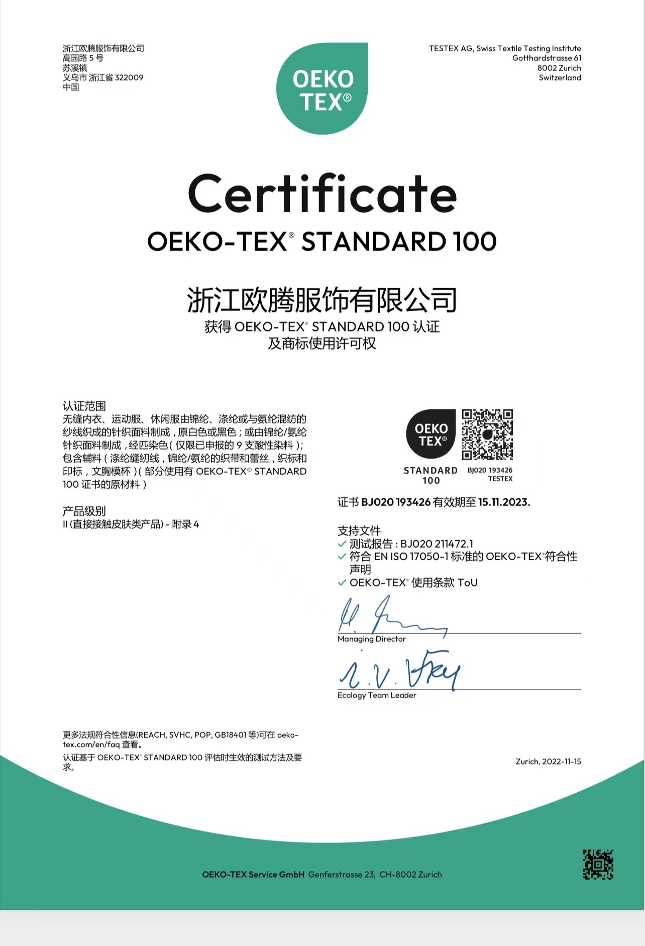 浙江歐騰服飾有限公司位于世界小商品之都-義烏。創(chuàng)立于2015年,是一家專業(yè)生產(chǎn)無縫針織運(yùn)動(dòng)服飾和內(nèi)衣的工貿(mào)一體企業(yè),擁有自主出口權(quán)。 工廠的占地面積約16000平方米 ,引進(jìn)了大型圣東尼、高騰等多種先進(jìn)的制衣設(shè)備300余臺(tái)。月產(chǎn)能可達(dá)90萬(wàn)件。 歐騰服飾每年投入近百萬(wàn)資金打樣開發(fā)新產(chǎn)品,有著一支高素質(zhì)設(shè)計(jì)、技術(shù)員工隊(duì)伍。工廠先后通過了ISO 9001質(zhì)量管理體系認(rèn)證、BSCI認(rèn)證、GRS認(rèn)證、OEKO-TEX國(guó)際生態(tài)紡織品認(rèn)證等多項(xiàng)專利檢測(cè)報(bào)告。可提供OEM&ODM服務(wù)。歐騰服飾以一套完整、科學(xué)的質(zhì)量管理體系,生產(chǎn)的服裝從原材料紗線到成衣,質(zhì)量完全能夠滿足國(guó)內(nèi)、國(guó)際質(zhì)量要求。獲得了客戶一致好評(píng)。工廠先后獲得省科技型企業(yè)、國(guó)家高新企業(yè)、義烏市誠(chéng)信講信用單位、規(guī)上企業(yè)、信用AAA級(jí)等榮譽(yù)。
